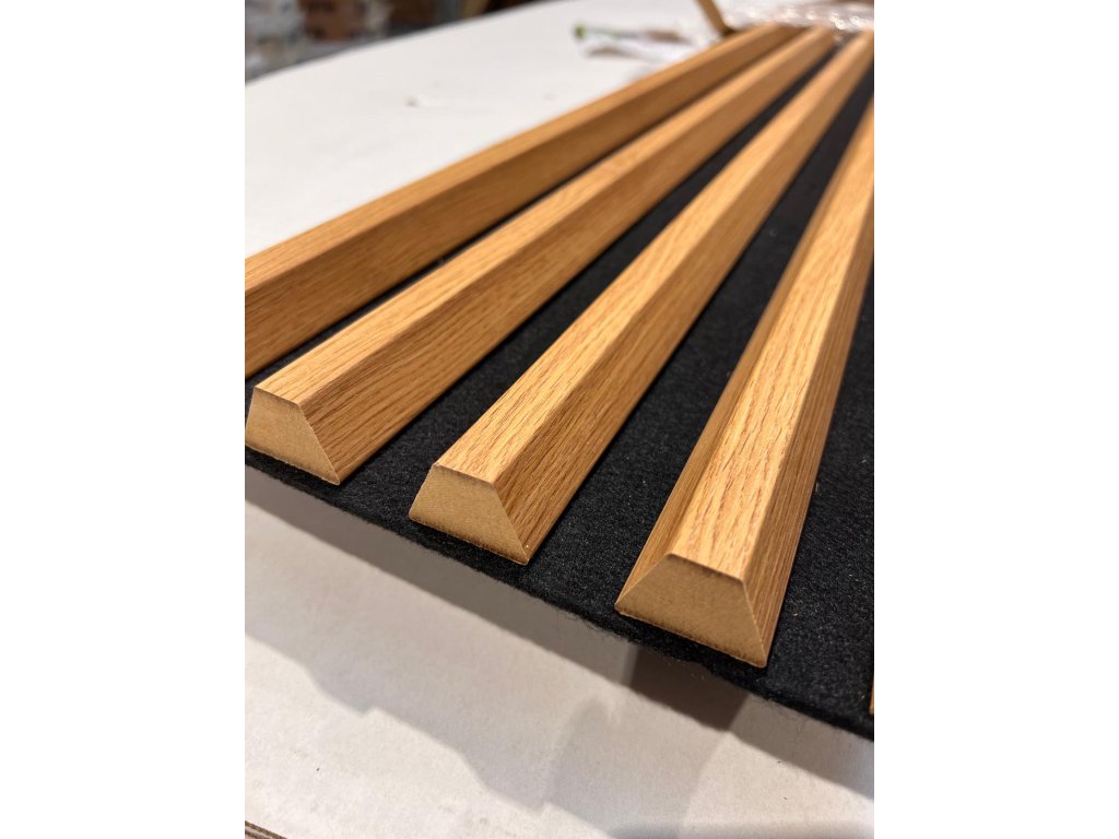 Jak akustické panely fungují? Panely se skládají z lamel (MDF s dřevěnou dýhou) umístěných na speciální akustické plsti. Tato plstěná podložka pohlcuje zvukové vlny, zatímco lamely je pomáhají rozptýlit. Tato kombinace efektivně redukuje nežádoucí odrazy zvuku v místnosti. |