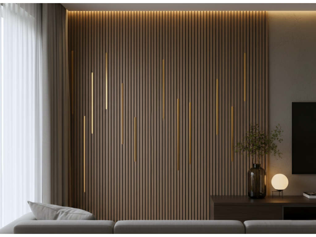 Chcete posunout vzhled vašich akustických panelů na zcela novou úroveň? Designová kovová lišta v luxusním zlatém provedení je tím pravým doplňkem. Tento drobný detail dokáže proměnit standardní lamelovou stěnu v umělecké dílo, které působí moderně, elegantně a nadstandardně.